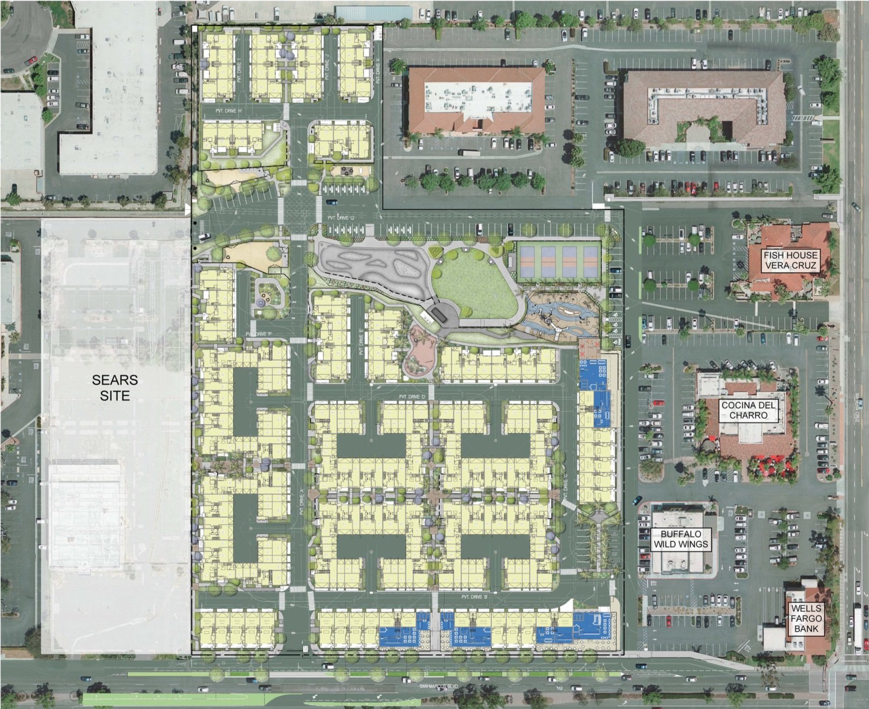 The Project is designed to activate W. San Marcos Blvd. through the inclusion of outdoor dining, street-facing homes to encourage walkability, social gathering spots, opportunities for public art, and other elements that improve this highly visible public space.